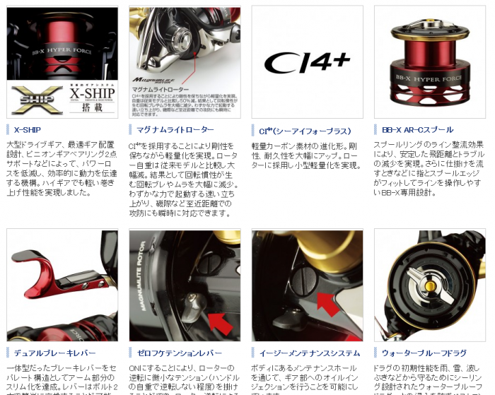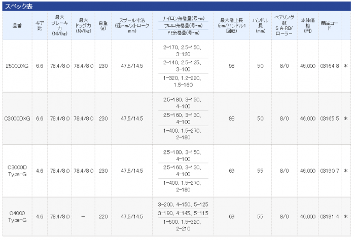 XG(エキストラハイギア)に加え、ローギアのType-Gが初登場。Type-Gのきわめてスムーズでパワフルな巻上げ力は太仕掛けで磯際に突っ込む大型魚にラインを送らず力で頭を向けさせる、あるいはまったく逆の繊細な仕掛けで魚を怒らせないように、ロッドを安定させてしっとりと巻上げるといったような釣りを演出できます。さらに軽量CI4+マグナムライトローターにより巻取り/逆転時の軽さを実現。またシマノ・ライトウェイトLBリール初となる太糸仕様のC4000Type-Gをラインナップ。「NEW BB-Xハイパーフォース」ならではの個性的な趣向をお楽しみいただけます。