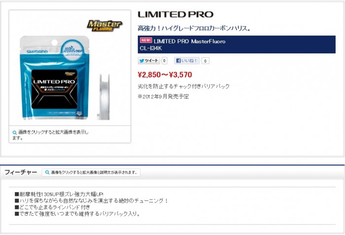 シマノ LIMITED PRO MasterFluoro <CL-I34K>入荷しました。